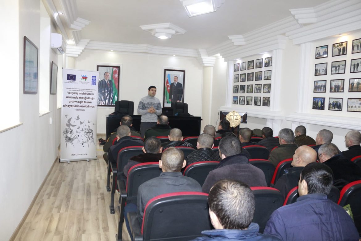 “Vətəndaş Cəmiyyəti Uğrunda” Müstəqil Məsləhət və Yardım Mərkəzi Avropa İttifaqının maliyyələşdirdiyi və BMT-nin İnkişaf Proqramının həyata keçirdiyi “Azərbaycanda innovasiya əsaslı və dayanıqlı vətəndaş cəmiyyətinin inkişafı” layihəsinin dəstəyi ilə “Keçmiş məhkumlar arasında məşğulluğu artırmaqla təkrar cinayətlərin azaldılması” layihəsini həyata keçirir. Layihə çərçivəsində cəzaçəkmə müəssisələrində olan məhkumlar arasında maarifləndirmə tədbirləri baş tutur. Maarifləndirmə görüşlərində məhkumlara əmək fəaliyyəti zamanı çıxan problemlər, məşğulluq təminatı ilə bağlı xidmətlər, mövcud sosial və hüquqi prosedurlar haqda məlumat verilmişdir. Məhkumların məşğulluq probleminin həlli onların sosial adaptasiyasında vacib komponent hesab edilir. İşləmək və iş yeri tapmaqda çətinliklə üzləşən keçmiş məhkumlar çox hallarda təkrar cinayət törədirlər. Məhkumlar arasında məşğulluq probleminin əsas səbəblərindən biri isə onların yaradılan xidmətlər haqda məlumatsızlığıdır. Məhz layihənin maarifləndirmə komponenti keçmiş məhkumlar arasında təkrar cinayətkarlığın azadılmasını hədəfləmişdir. Görüşlər zamanı habelə müvafiq qanunvericilik aktları ilə bağlı materiallar da, paylanılmışdır.