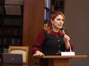 Daha sonra universitetin müəllimi İlahə Ümidli çıxış edərək tədrisin əmək bazarının tələblərinə uyğunlaşdırılması istiqamətində görülən işlərdən və bu kimi praktik yönümlü tədbirlərin əhəmiyyətindən bəhs edib.