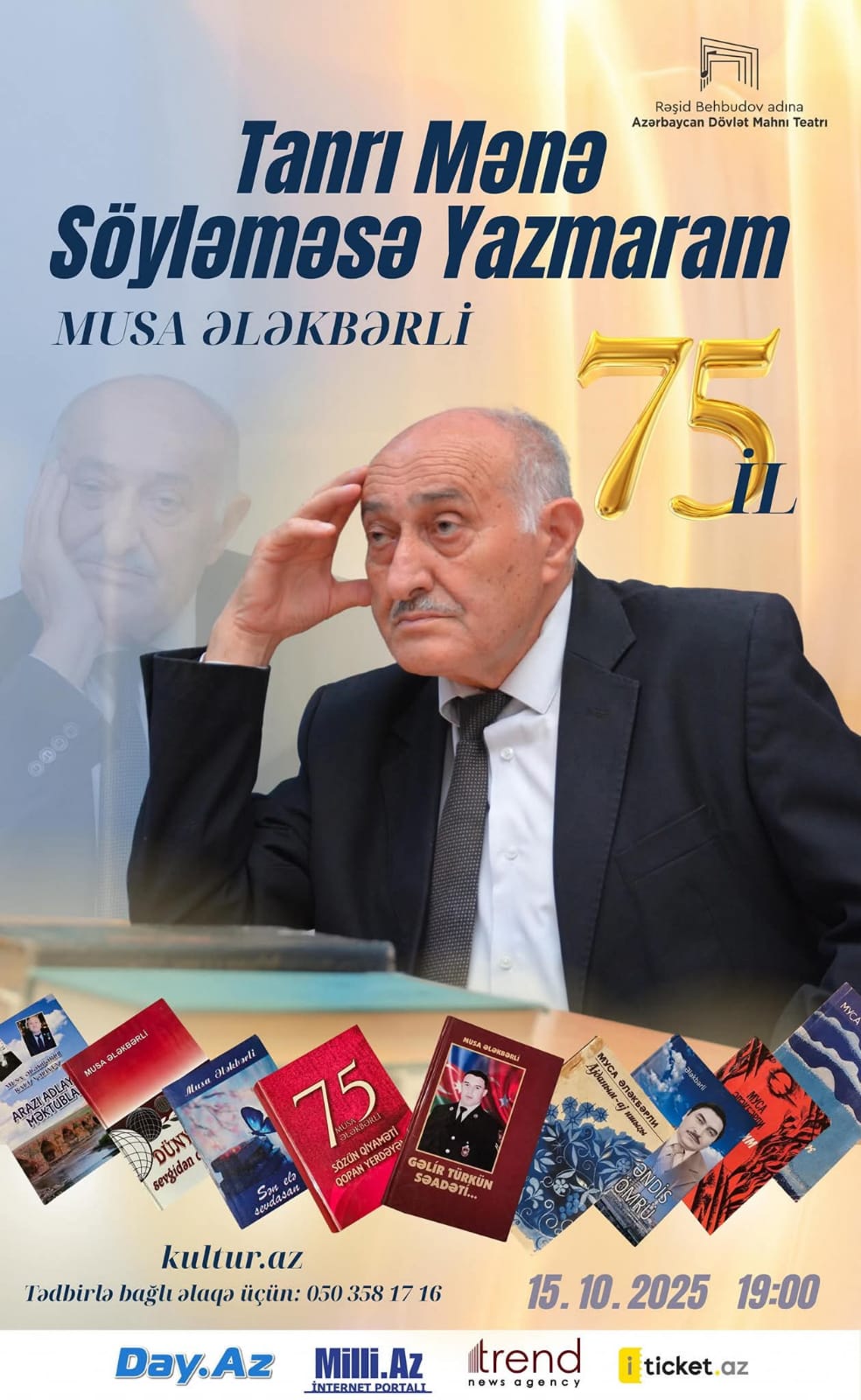 Görkəmli Azərbaycan şairi Musa Ələkbərlinin 75 illik yubiley mərasimi keçiriləcək. 15 oktyabr 2025-ci il tarixində Rəşid Behbudov adına Dövlət Mahnı teatrında baş tutacaq tədbirdə ölkə ictimaiyyətinin nümayəndələri iştirak edəcəklər. Rəngarəng proqram ilə təşkili nəzərdə tutulan tədbir haqqında məlumatlar qarşıdakı zamanlarda da geniş ictimaiyyətin diqqətinə çatdırılacaq.
