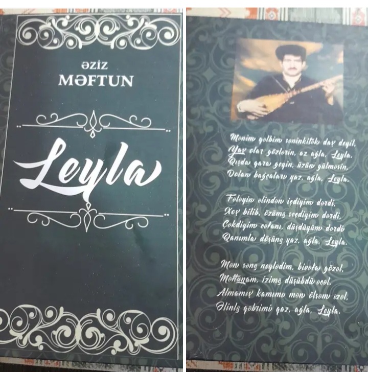 Dəyərli və əziz eloğlumuz, istəkli qardaşım Bəhruz Cəfərovun dəstəyi ilə çap olunan “Leyla” adlanan bu kitabda Əziz Məftun yaradıcılığına mühüm bir hissəsini təşkil edən qoşmaları toplanıb.