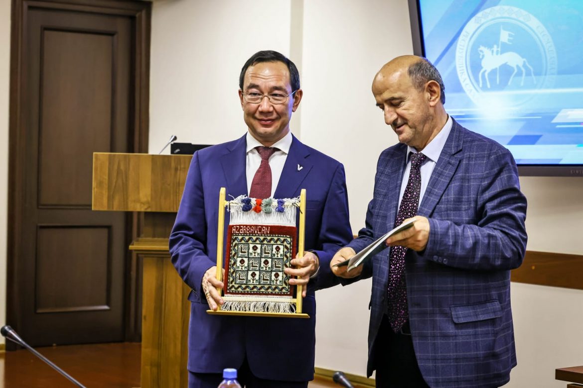 Tanınmış şair Saxa (Yakutiya) Yazıçılar Birliyinin fəxri sədri, xalq şairi, RSFSR-in əməkdar mədəniyyət xadimi Natalya Xarlampeyeva və yeni sədr Qavril Androsovla Saxa (Yakutiya) Respublikasının Dövlət rəhbəri Aysen Nikolayevlə görüşüb.