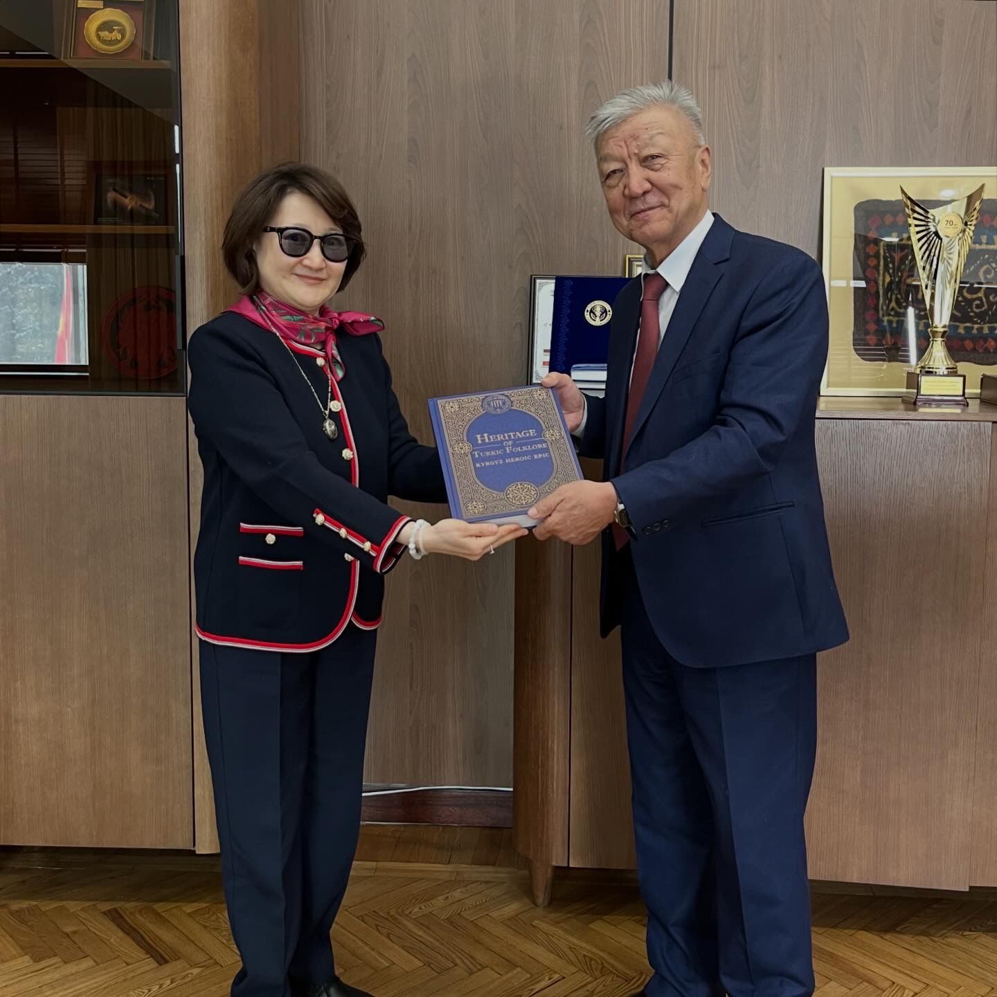 Qırğız Respublikasına rəsmi səfər çərçivəsində Türk Mədəniyyəti və İrsi Fondunun prezidenti xanım Aktotı Raimkulova ilə Qırğız Respublikasının Prezidentiyə yanında Milli Elmlər Akademiyasının prezidenti Kanatbek Abdrahmatov arasında görüş keçirilib.